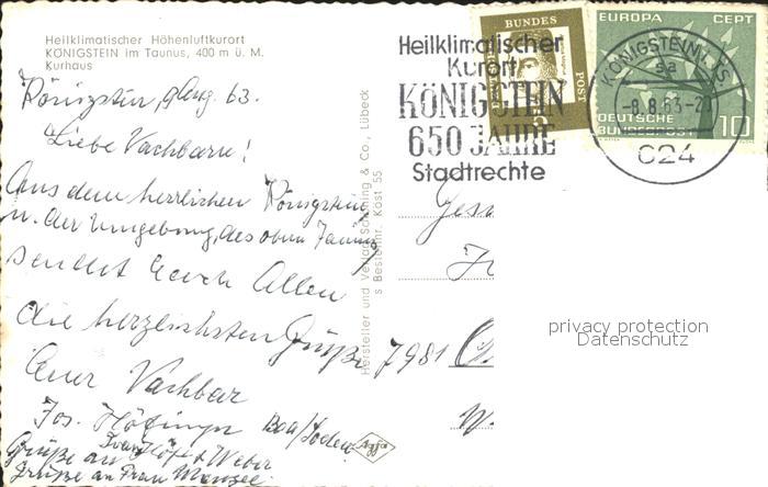 72118062 alte Postkarte Koenigstein Taunus Kurhaus postalisch gelaufen Erhaltung siehe scans KatCode: 11110006434005