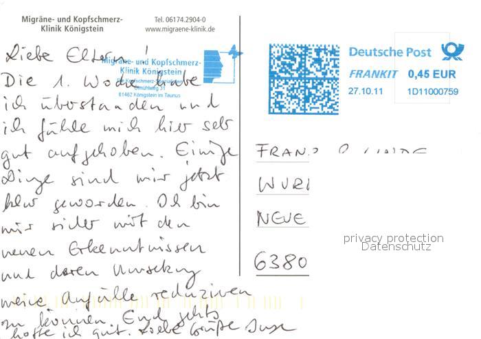 73686900 Koenigstein Taunus Migraene und Kopfschmerz Klink Koenigstein Wassertreten Zimmer Massage Speisesaal Gruppentherapie postalisch nicht gelaufen Erhaltung siehe scans [WerneD78] KatCode: 11110006434005