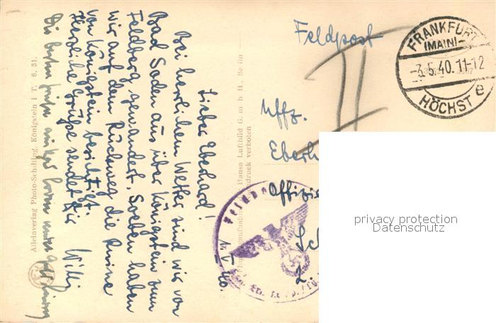 73361072 alte Postkarte Koenigstein Taunus mit Feldberg und Altkoenig postalisch gelaufen Feldpost – Stempel Erhaltung siehe scans [LiesaD40] KatCode: 11110006434005
