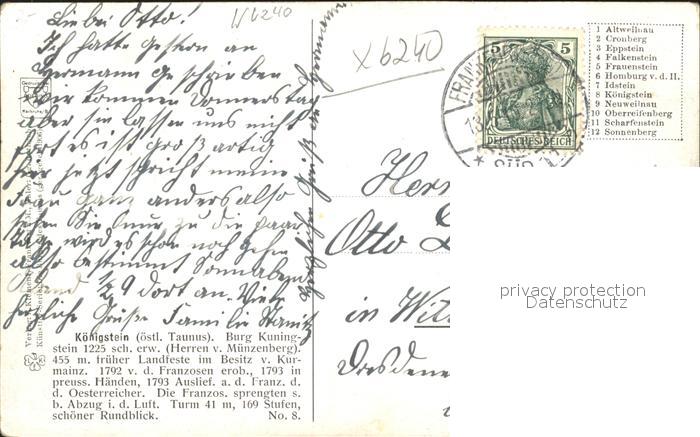 41724923 alte Postkarte Koenigstein Taunus Ortsansicht mit Burgruine postalisch gelaufen KatCode: 11110006434005