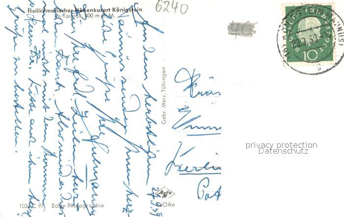 73696395 alte Postkarte Koenigstein Taunus Panorama Heilklimatischer Hoehenkurort mit Burgruine postalisch gelaufen Erhaltung siehe scans [FriedD77] KatCode: 11110006434005