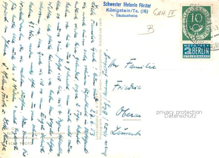 73778664 alte Postkarte Koenigstein Taunus Panorama Hoehenluftkurort Blick auf Hochtaunus und Taunusheim postalisch gelaufen Fliegeraufnahme Erhaltung siehe scans [FriedD77] KatCode: 11110006434005