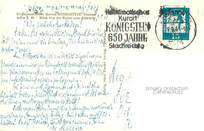 73777977 alte Postkarte Koenigstein Taunus Panorama Kurort Schloss Blick zum Altkoenig postalisch gelaufen Erhaltung siehe scans [FriedD77] KatCode: 11110006434005