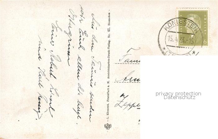 73777995 alte Postkarte Koenigstein Taunus Panorama Luftkurort vom Romberg aus gesehen postalisch gelaufen Erhaltung siehe scans [FriedD77] KatCode: 11110006434005