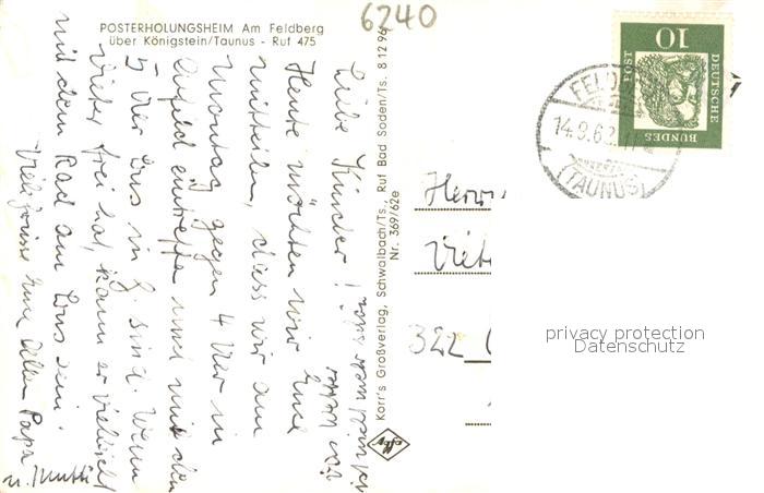 73696335 alte Postkarte Koenigstein Taunus Posterholungsheim am Feldberg Blick von der Terrasse postalisch gelaufen Erhaltung siehe scans [FriedD77] KatCode: 11110006434005