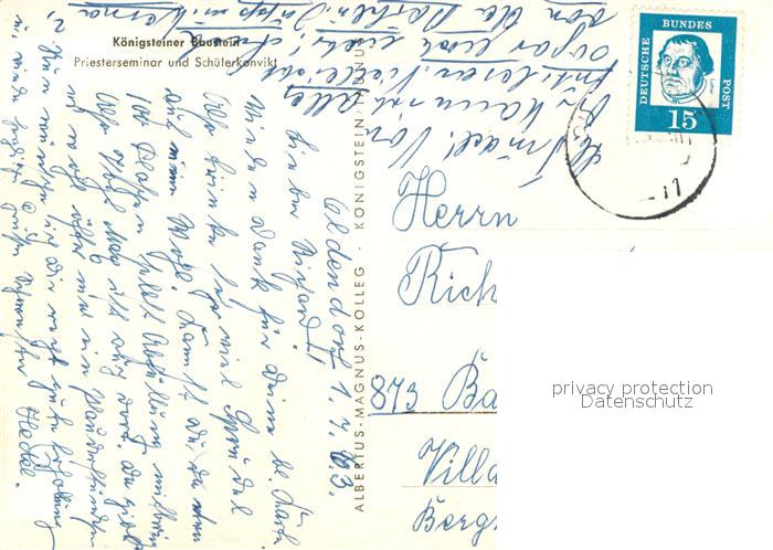 72980785 alte Postkarte Koenigstein Taunus Priesterseminar und Schuelerkonvikt Koenigsteiner Baustein postalisch gelaufen Erhaltung siehe scans [FriedD77] KatCode: 11110006434005