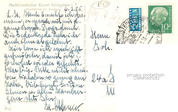 73840201 alte Postkarte Koenigstein Taunus Privatklinik Dr Amelung postalisch gelaufen Erhaltung siehe scans [FriedD77] KatCode: 11110006434005