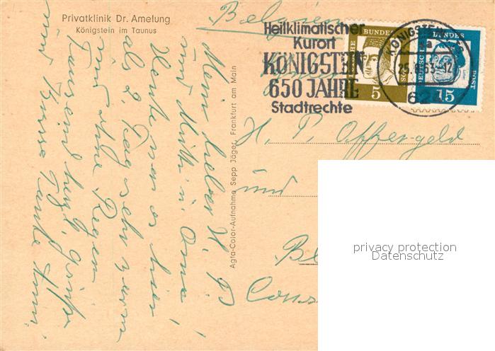 73312061 alte Postkarte Koenigstein Taunus Privatklinik Dr. Amelung postalisch gelaufen Erhaltung siehe scans [NatalD47] KatCode: 11110006434005