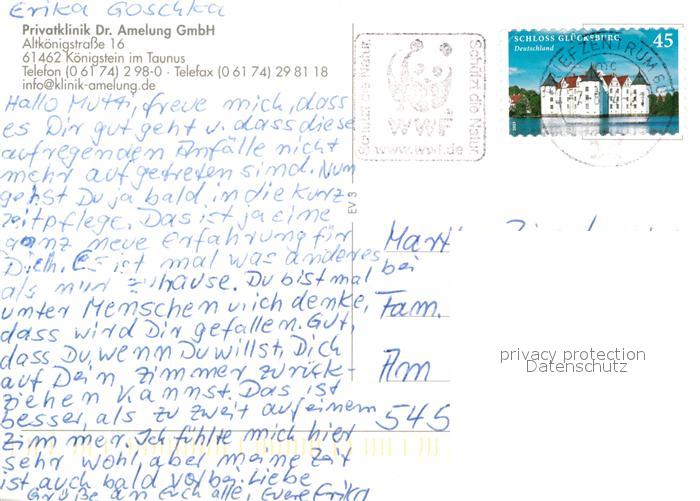 73173995 alte Postkarte Koenigstein Taunus Privatklinik Dr. Amelung GmbH postalisch gelaufen Erhaltung siehe scans [NatalD47] KatCode: 11110006434005