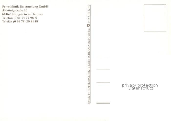 73174669 Koenigstein Taunus Privatklinik Dr. Amelung GmbH postalisch nicht gelaufen Erhaltung siehe scans [PaolaD17] KatCode: 11110006434005