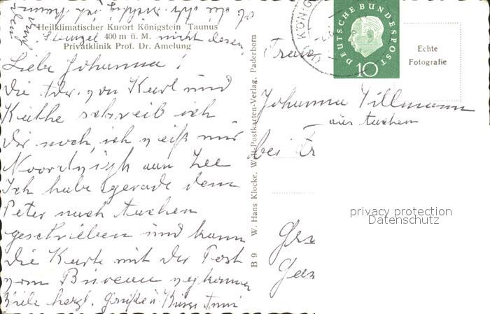 72200183 alte Postkarte Koenigstein Taunus Privatklinik postalisch gelaufen Erhaltung siehe scans KatCode: 11110006434005
