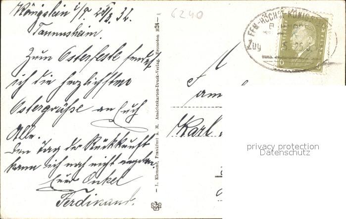 71573290 alte Postkarte Koenigstein Taunus R.K.V.Taunusheim (Bahnpoststempel) postalisch gelaufen Erhaltung siehe scans KatCode: 11110006434005