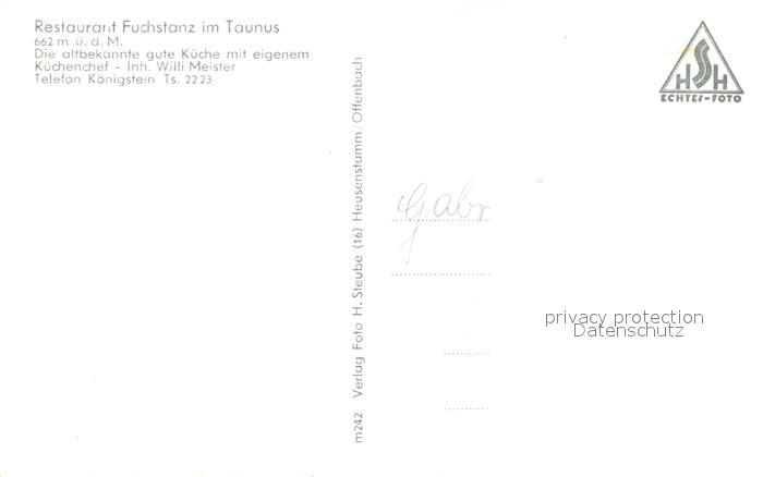 73253263 Koenigstein Taunus Restaurant Fuchstanz postalisch nicht gelaufen Erhaltung siehe scans [KathaD81] KatCode: 11110006434005