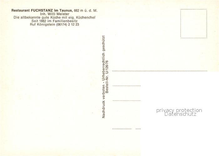 73227421 Koenigstein Taunus Restaurant Fuchstanz postalisch nicht gelaufen Erhaltung siehe scans [FriedD77] KatCode: 11110006434005