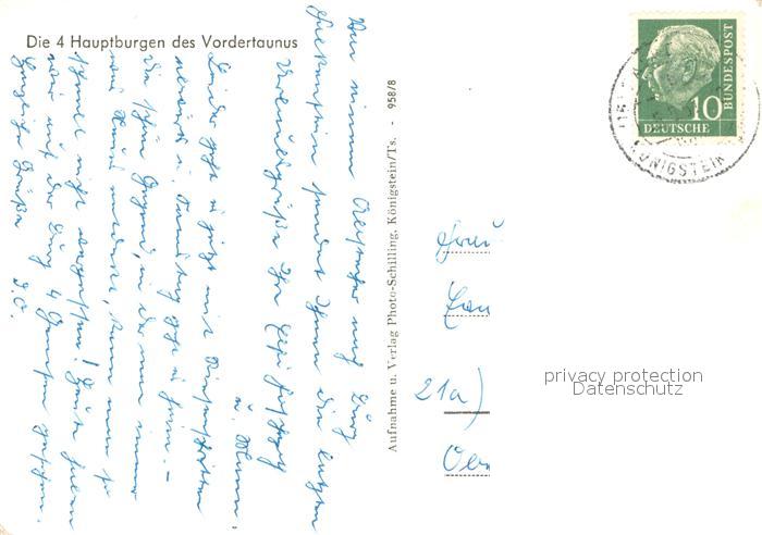 73737771 alte Postkarte Koenigstein Taunus Ruinen Koenigstein – Falkenstein -eppstein und Burg Kronberg postalisch gelaufen Erhaltung siehe scans [LiesaD40] KatCode: 11110006434005