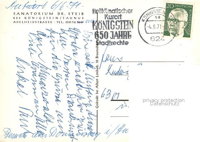 73040802 alte Postkarte Koenigstein Taunus Sanatorium Dr. Steib postalisch gelaufen Erhaltung siehe scans [NatalD47] KatCode: 11110006434005