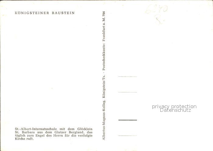 72118946 Koenigstein Taunus St Albert Internatsschule mit dem Gloecklein St Barbara postalisch nicht gelaufen KatCode: 11110006434005