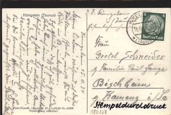 71325135 alte Postkarte Koenigstein Taunus Taunusheim der R.K.V. Fliegeraufnahme postalisch gelaufen Erhaltung mit Maengel KatCode: 11110006434005