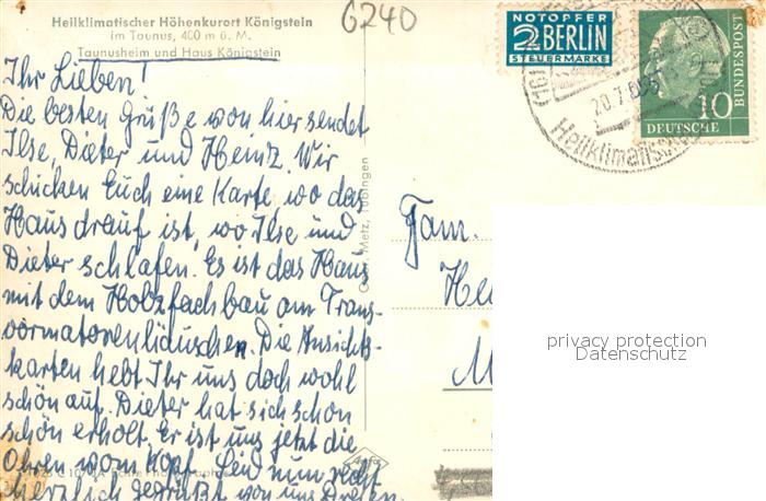73706490 alte Postkarte Koenigstein Taunus Taunusheim und Haus Koenigstein postalisch gelaufen Erhaltung siehe scans [WerneD78] KatCode: 11110006434005
