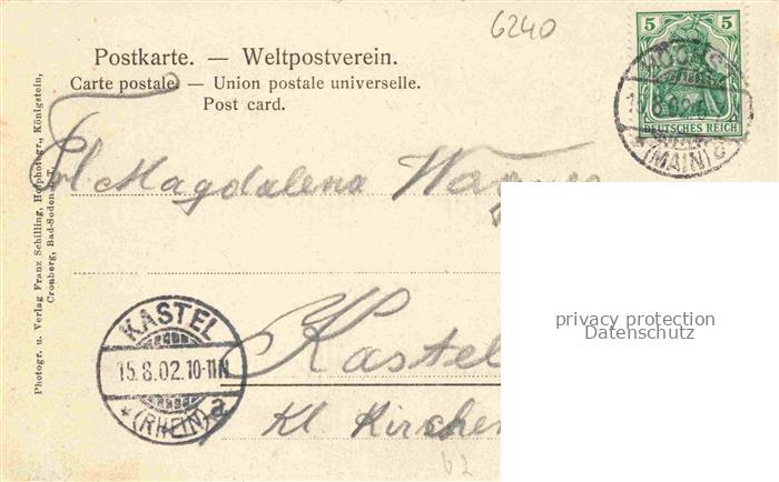 74117340 alte Postkarte Koenigstein Taunus Teilansicht mit Blick gegen Burgruine postalisch gelaufen Erhaltung siehe scans [FriedD77] KatCode: 11110006434005