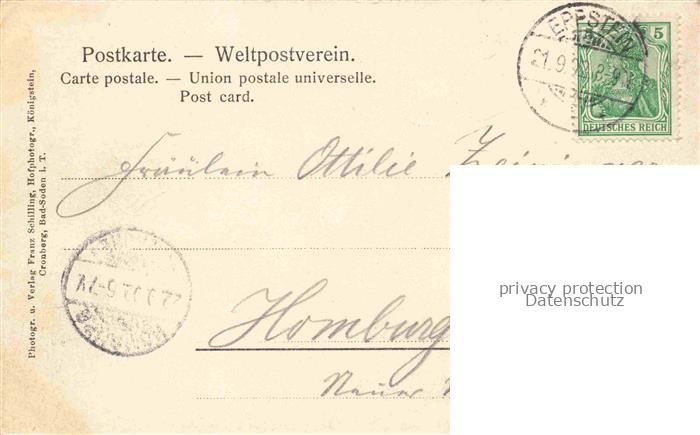 74117350 alte Postkarte Koenigstein Taunus Teilansicht mit Blick zur Burgruine postalisch gelaufen Erhaltung siehe scans [FriedD77] KatCode: 11110006434005
