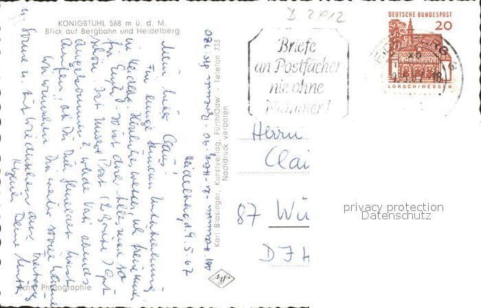 72047975 alte Postkarte Koenigstuhl Heidelberg Bergbahn postalisch gelaufen Erhaltung siehe scans KatCode: 11110008221000