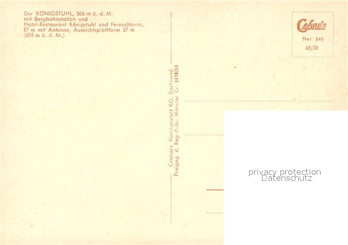 73131465 Koenigstuhl Heidelberg Bergbahnstation Hotel Fernsehturm postalisch nicht gelaufen Erhaltung siehe scans [NatalD47] KatCode: 11110008221000