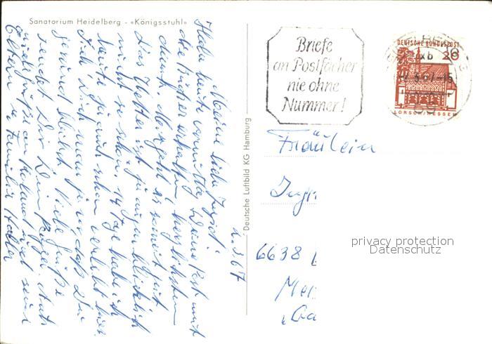 72534046 alte Postkarte Koenigstuhl Heidelberg Sanatorium Fliegeraufnahme postalisch gelaufen Erhaltung siehe scans [FriedD77 kt118box] KatCode: 11110008221000