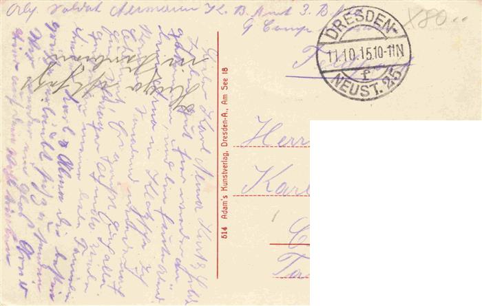 73973937 alte Postkarte Koenigswald Klotzsche Dresden Ansicht mit Kirche Feldpost postalisch gelaufen Erhaltung siehe scans [FriedD77] KatCode: 11110014262000