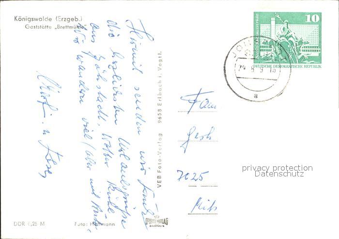 72059238 alte Postkarte Koenigswalde Erzgebirge Gaststaette Brettmuehle postalisch gelaufen Erhaltung siehe scans KatCode: 11110014171200