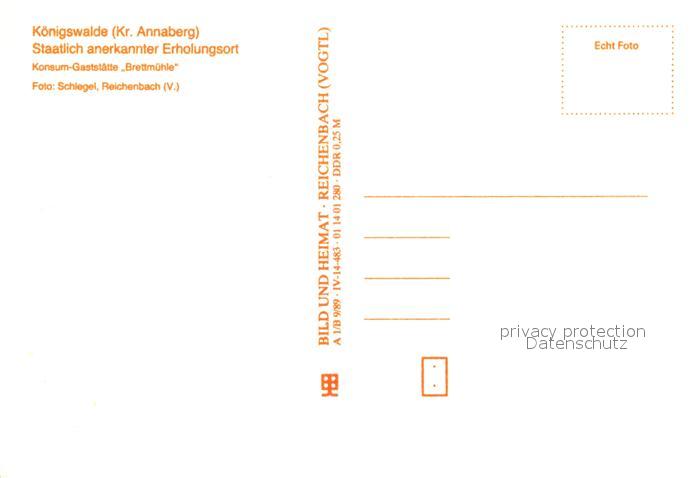 33549559 Koenigswalde Erzgebirge Konsum-Gastst?tte Brettm?hle postalisch nicht gelaufen Erhaltung siehe scans [PaolaD17] KatCode: 11110014171200