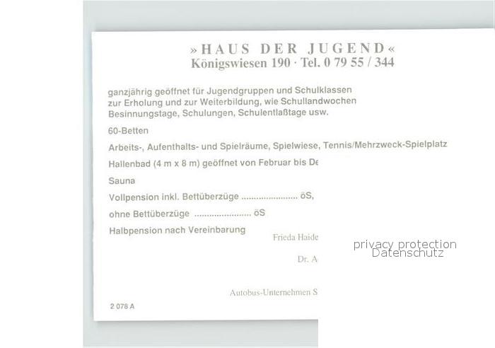 71859776 Koenigswiesen Oberoesterreich Haus der Jugend postalisch nicht gelaufen Werbekarte (keine Postkarte) Erhaltung siehe scans KatCode: 11390313040608