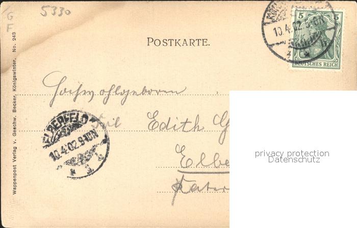 31704934 alte Postkarte Koenigswinter postalisch gelaufen Erhaltung siehe scans KatCode: 11110005382024