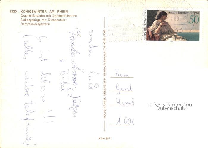 72219411 alte Postkarte Koenigswinter am Rhein mit Drachenfelsbahn Drachenfelsruine Siebengebirge Dampfer Anlegestelle postalisch gelaufen Erhaltung siehe scans KatCode: 11110005382024