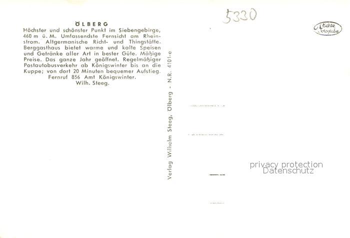 73690112 Koenigswinter Berggasthaus auf dem oelberg im Siebengebirge postalisch nicht gelaufen Erhaltung siehe scans [FriedD77] KatCode: 11110005382024