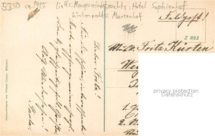 73689783 Koenigswinter Berghotels am oelberg im Siebengebirge Feldpost postalisch nicht gelaufen Erhaltung siehe scans [FriedD77] KatCode: 11110005382024