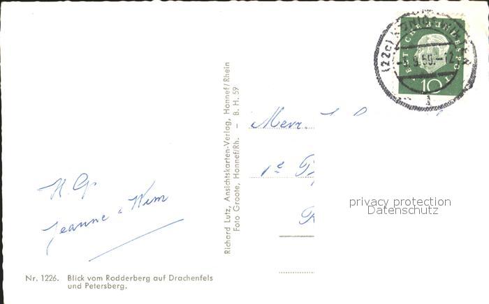 72081855 alte Postkarte Koenigswinter Bick vom Rodderberg auf Drachenfels und Petersberg Rhein postalisch gelaufen Erhaltung siehe scans KatCode: 11110005382024