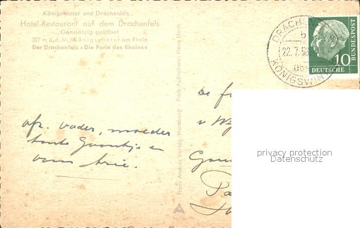 alte Postkarte Koenigswinter Blick auf den Drachenfels postalisch gelaufen Erhaltung siehe scans
