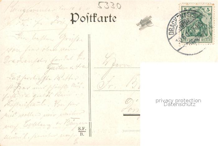 73689878 alte Postkarte Koenigswinter Blick ueber den Rhein Drachenfels Drachenburg und Wolkenburg postalisch gelaufen Erhaltung siehe scans [FriedD77] KatCode: 11110005382024