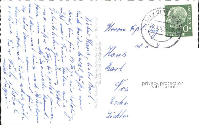 72434041 alte Postkarte Koenigswinter Blick vom Rolandsbogen auf Rhein und Siebengebirge postalisch gelaufen Erhaltung siehe scans KatCode: 11110005382024