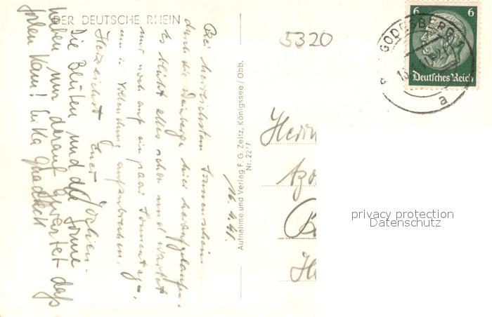 73689911 alte Postkarte Koenigswinter Blick von Terrasse des Kurhotels Petersberg Drachenfels Rheintal postalisch gelaufen Erhaltung siehe scans [FriedD77] KatCode: 11110005382024