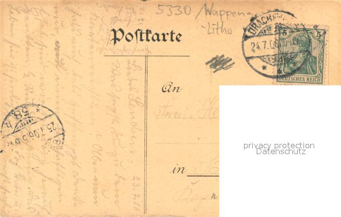73689768 alte Postkarte Koenigswinter Burgruine Drachenfels Wappen Litho postalisch gelaufen Erhaltung siehe scans [FriedD77] KatCode: 11110005382024