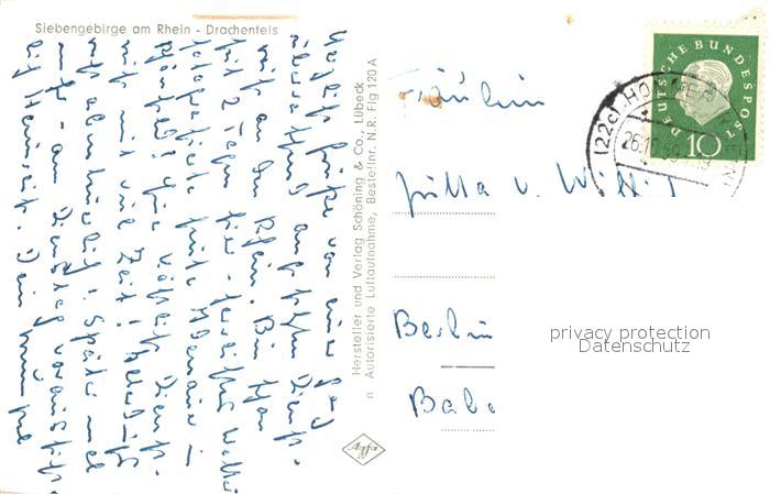 73295741 alte Postkarte Koenigswinter Drachenfels Fliegeraufnahme postalisch gelaufen Erhaltung siehe scans [NatalD47] KatCode: 11110005382024
