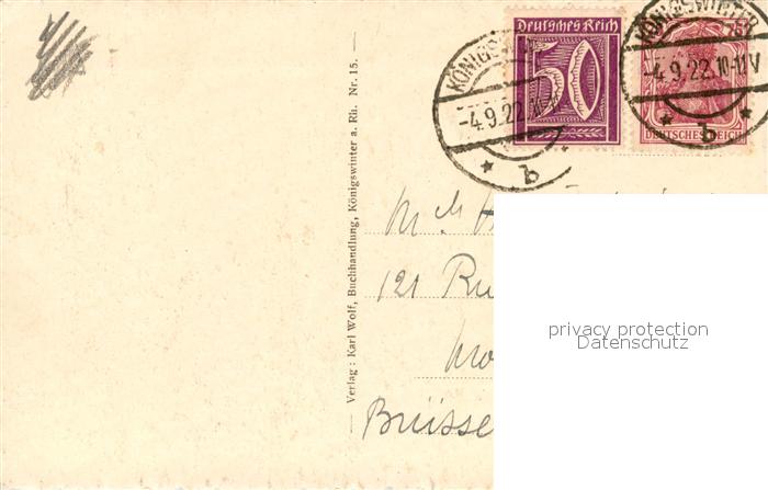 73566696 alte Postkarte Koenigswinter Drachenfels K?nstlerkarte postalisch gelaufen Erhaltung siehe scans [LiesaD40] KatCode: 11110005382024