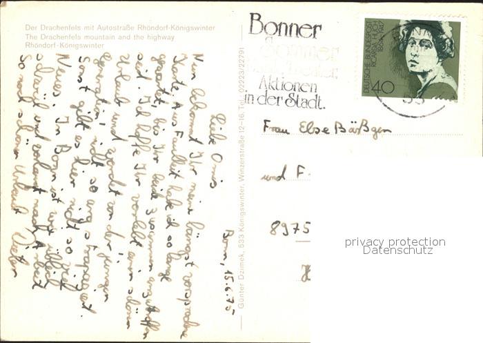 72131461 alte Postkarte Koenigswinter Drachenfels mit Autostrasse Rhoendorf postalisch gelaufen Erhaltung siehe scans KatCode: 11110005382024