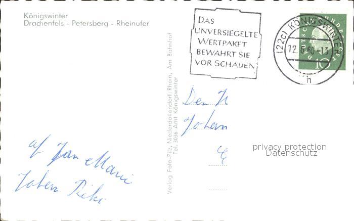 72062979 alte Postkarte Koenigswinter Drachenfels Petersberg Rheinufer postalisch gelaufen Erhaltung siehe scans KatCode: 11110005382024