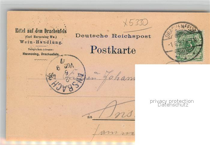 42988182 alte Postkarte Koenigswinter Drachenfels Ruine Teilansicht Plateau postalisch gelaufen Erhaltung siehe scans [AndreD76] KatCode: 11110005382024