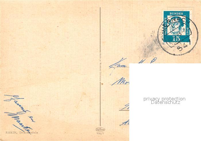 73308115 alte Postkarte Koenigswinter Drachenfels postalisch gelaufen Erhaltung siehe scans [NatalD47] KatCode: 11110005382024