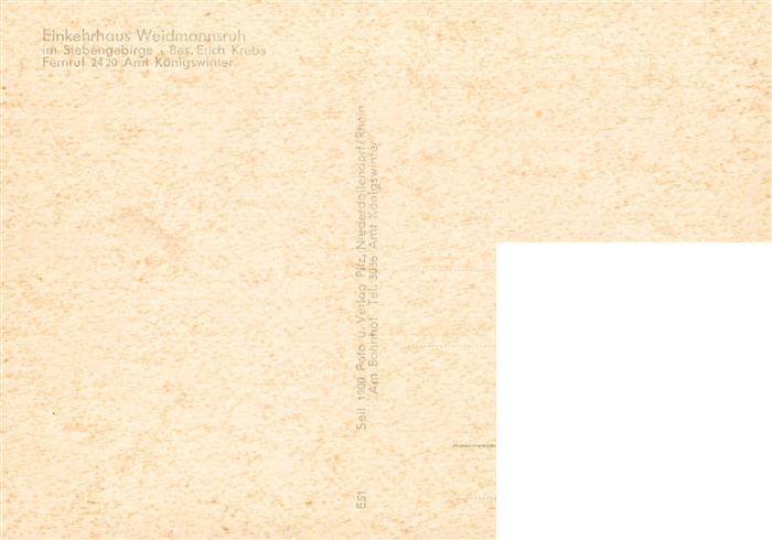 73924614 Koenigswinter Einkehrhaus Weidmannsruh im Siebengebirge postalisch nicht gelaufen Erhaltung siehe scans [FriedD77] KatCode: 11110005382024