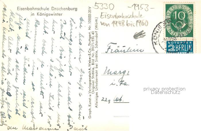 73689779 alte Postkarte Koenigswinter Eisenbahnschule Drachenburg Fliegeraufnahme postalisch gelaufen Erhaltung siehe scans [FriedD77] KatCode: 11110005382024